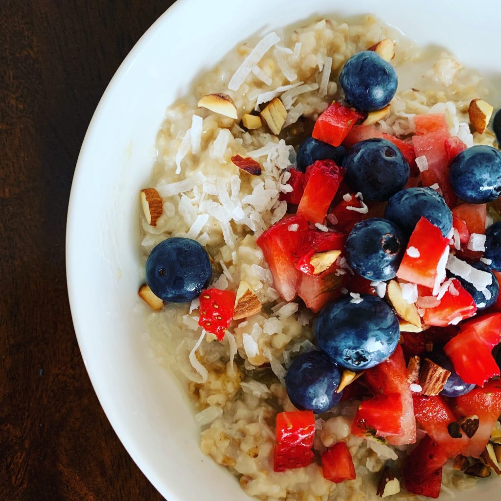Good Morning! Whenever I make steel cut oats, it is a good morning. I love the nutty flavor and the texture of steel cut oats. I love switching up the toppings to keep breakfast interesting and my kids enjoy that part too. Compare it to one of those frozen yogurt places, where you can put gummy worms, chocolate chips, and brownie bits into your frozen yogurt except it’s in oatmeal. I always have gummy bears on hand for oatmeal… I’m totally kidding! We keep it pretty nutritious for breakfast but hey, who knows, maybe that will be the newest trend.